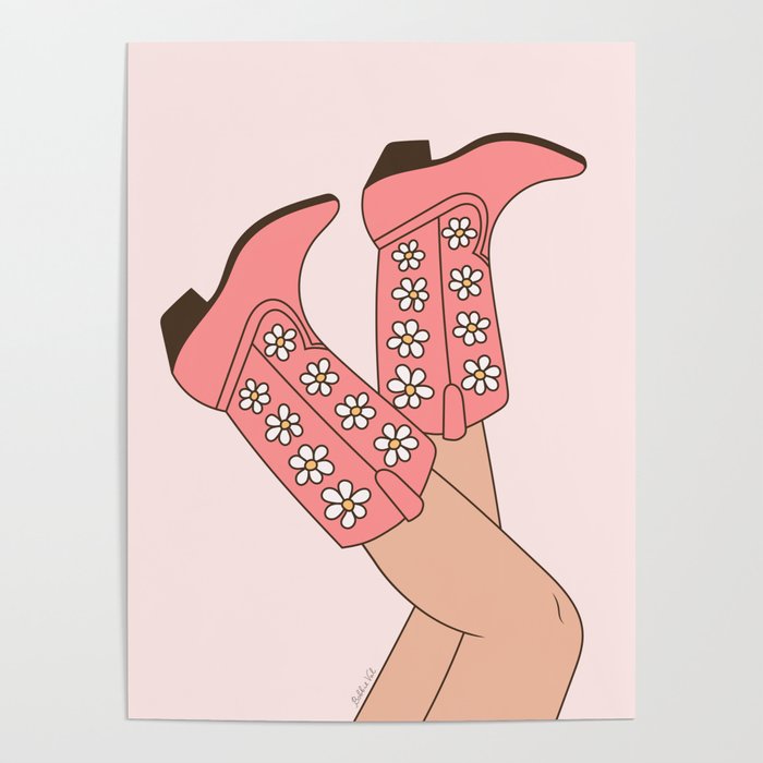 Pink Floral Cowboy Boots Cute Western Cowgirl Legs Poster By Bobbie Val Society6